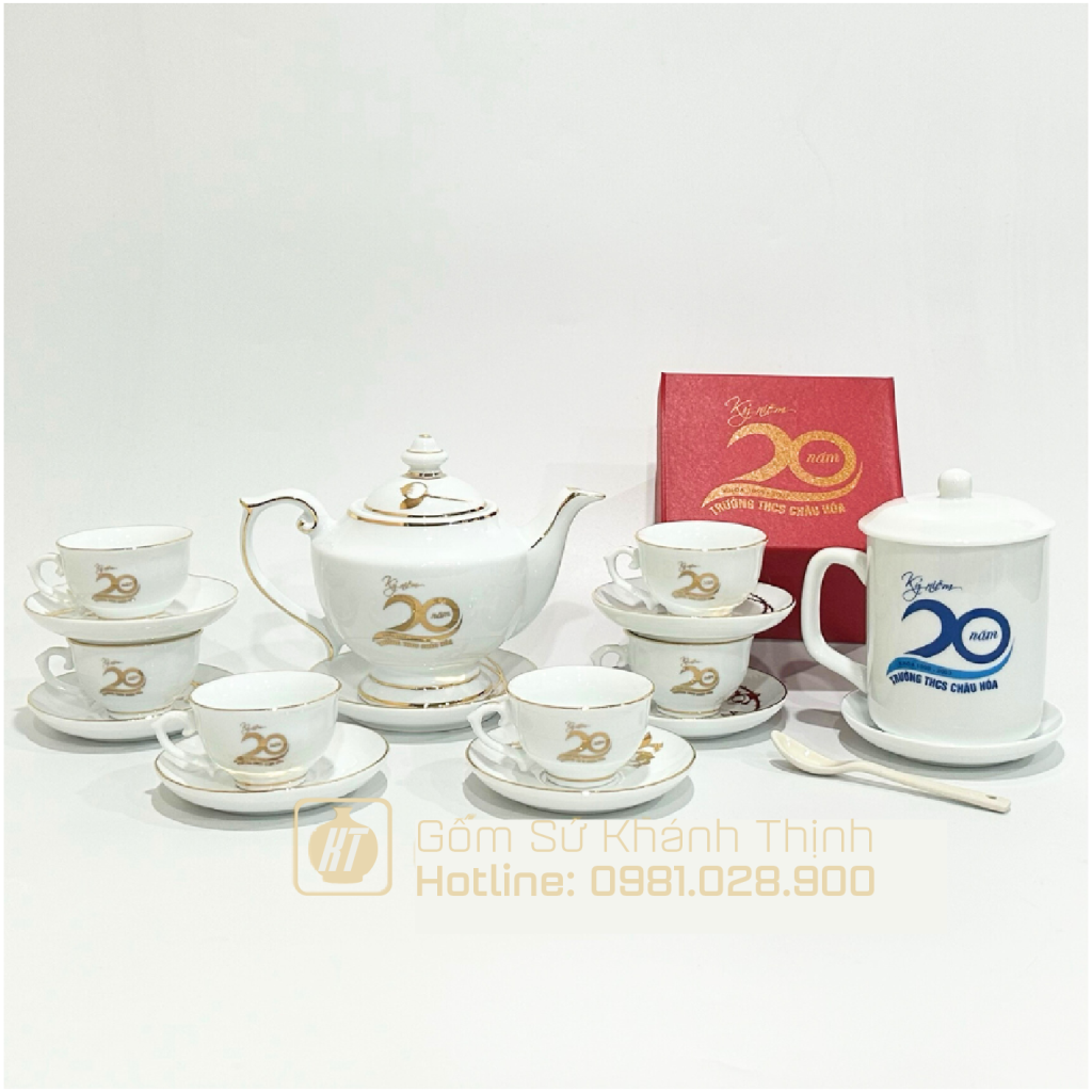 Bộ ấm chén là lựa chọn hàng đầu khi cần quà tặng lưu niệm trang trọng và thiết thực. Sản phẩm phù hợp sử dụng tại gia đình, phòng họp, văn phòng làm việc – giúp logo tổ chức hiện diện thường xuyên và tự nhiên.